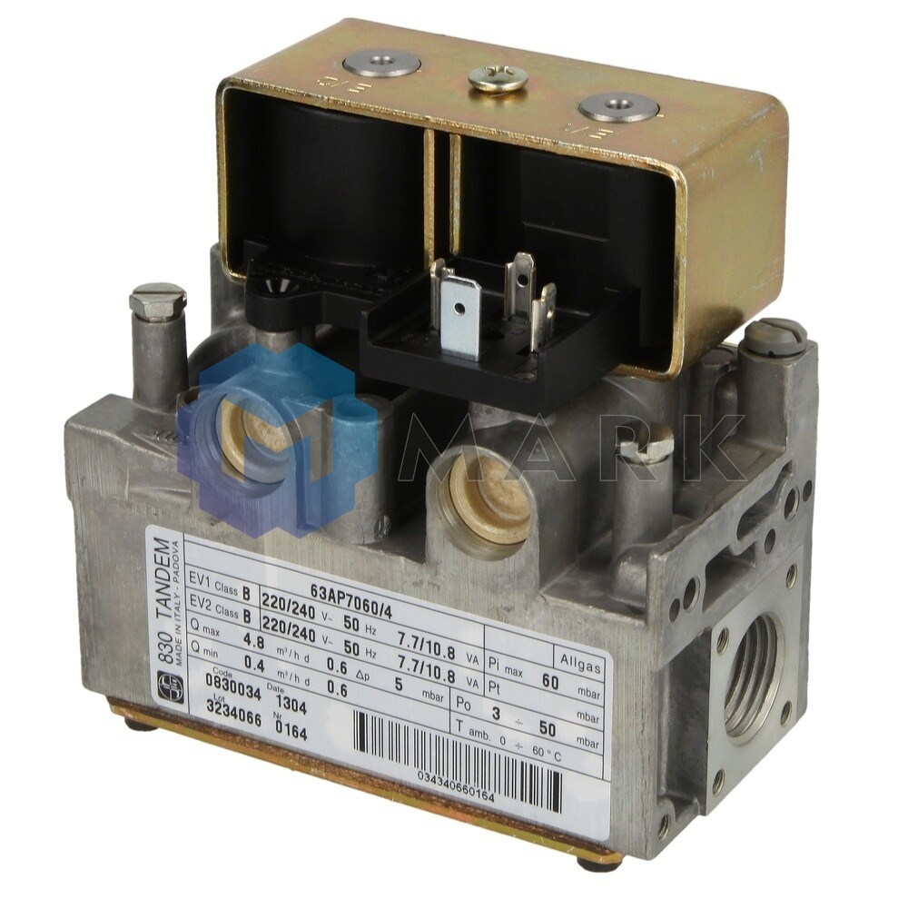 Газовый электромагнитный клапан Sit 830 Tandem состоит из двух автоматических запорных клапанов и регулятора давления. Устройство позволяет ручную регулировку, что дает возможность задавать максимальное и минимальное давление на выходе, а также контролировать расход пилотного газа. Корпус клапана выполнен из коррозиестойкого алюминиевого сплава, что обеспечивает долговечность и надежность в эксплуатации. Присоединение к газопроводу осуществляется через резьбовые отверстия Rp ½" и фланцы, что упрощает установку в любом положении. Внутри блока автоматики установлен фильтр для отсеивания грубых частиц, а также дополнительный фильтр на выходе пилотного газа, что повышает надежность работы устройства. Конструкция клапана позволяет легко настраивать рабочие параметры, а на корпусе предусмотрены точки для замеров давления.- Максимальное давление входящего газа: 60 мбар