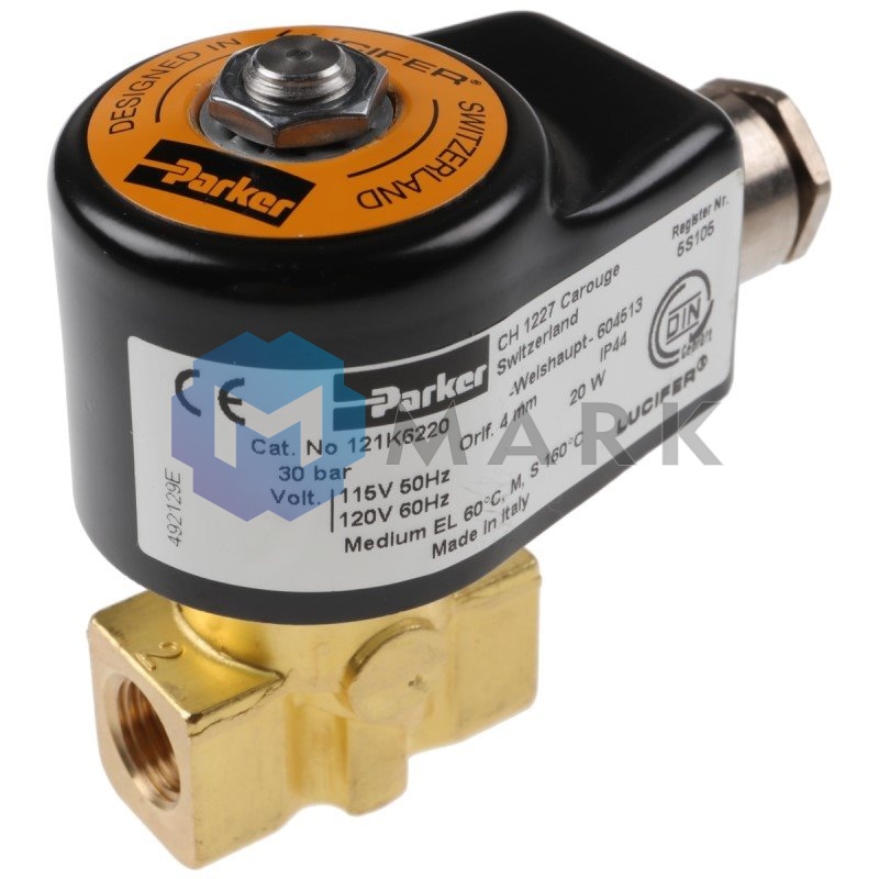 Электромагнитный клапан Lucifer/Parker 121K6220 обладает рядом ключевых особенностей, которые делают его идеальным выбором для однотрубных систем с давлением жидкого топлива до 30 бар. Вот некоторые из них:- Тип: предохранительно-запорное устройство нормально-закрытого типа.